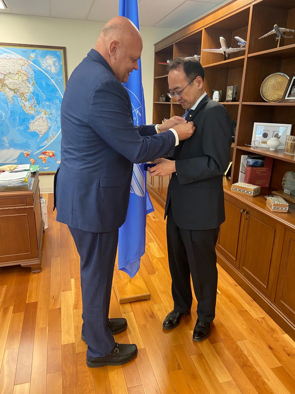 El director general del Cuerpo Especializado en Seguridad Aeroportuaria y de la Aviación Civil (CESAC), general de brigada piloto Enmanuel Souffront Tamayo, FARD, sostuvo un encuentro bilateral de alto nivel con el señor Toshiyuki Onuma, presidente del Consejo de la Organización de Aviación Civil Internacional (OACI), en el marco de un importante foro internacional del sector aeronáutico, celebrado con la participación de autoridades y expertos de múltiples Estados miembros.